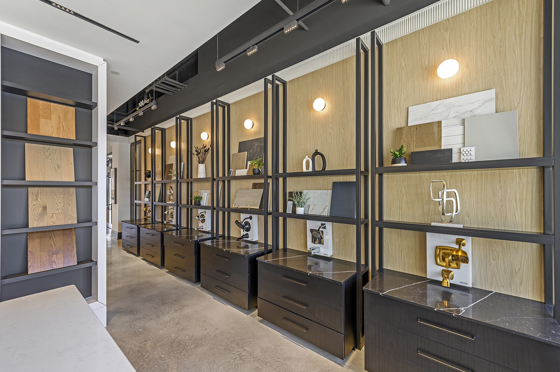 Our Decor Studio is filled with premium displays and surfaces for combining samples. You’ll have the freedom to mix and match different finishes and textures and play around with various options to find what best suits your style and needs. By opening drawers, touching fixtures, and moving samples, you can experience the products and get a feel for what works with your vision. Whether your style is traditional, transitional, or modern, we have up-to-date offerings to suit every decor preference.